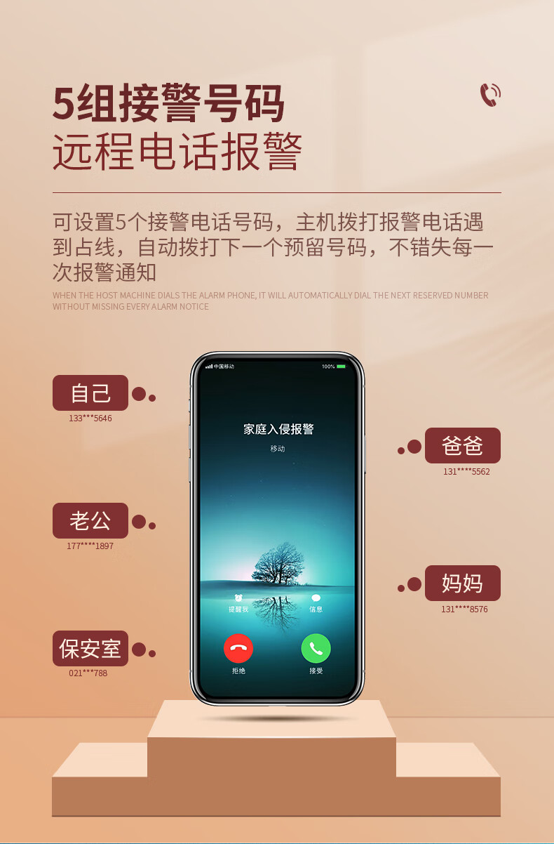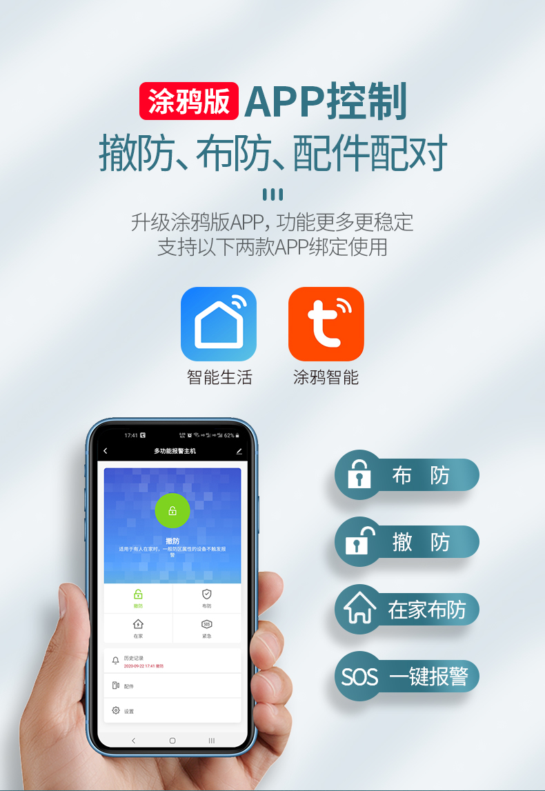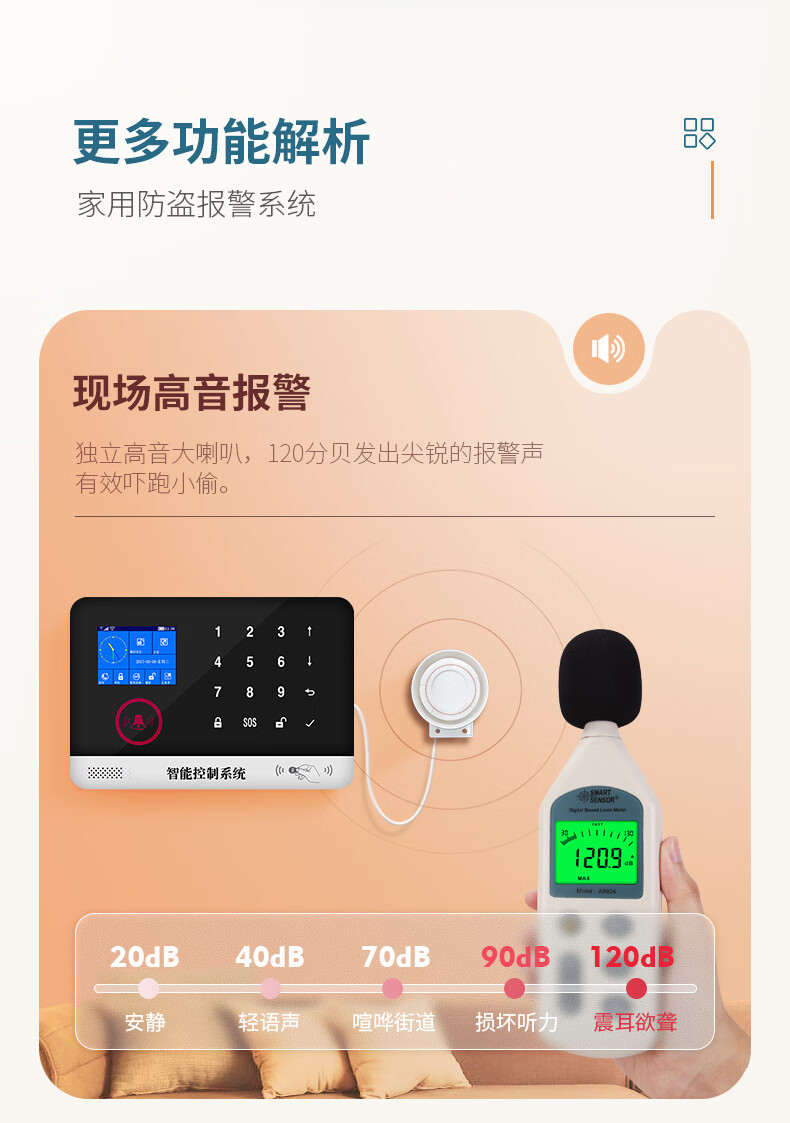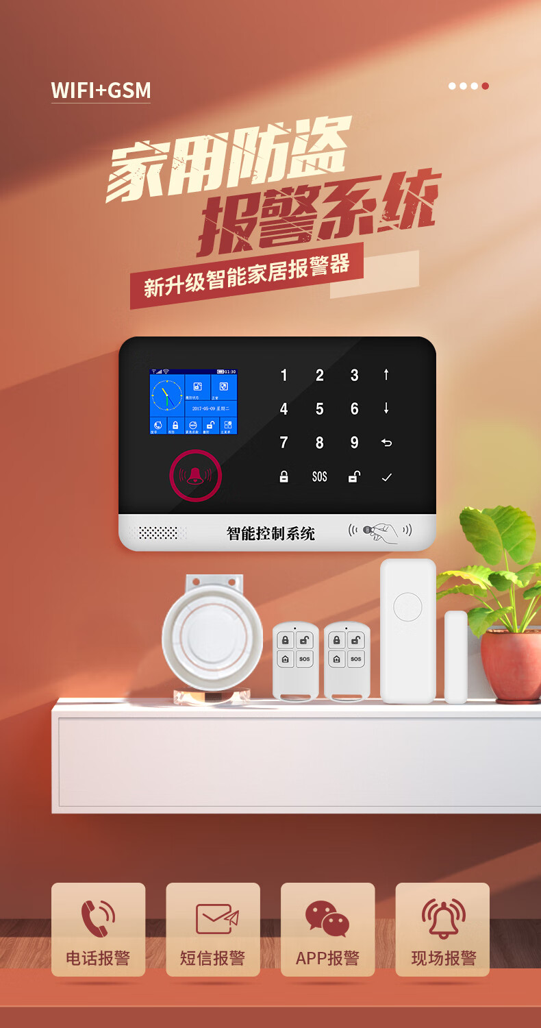 凌防(LFang)AE75-GSM/WIFI 家用防盗报警器开门感应门窗安防系统现场无线声光APP布撤防短信电话远程通知