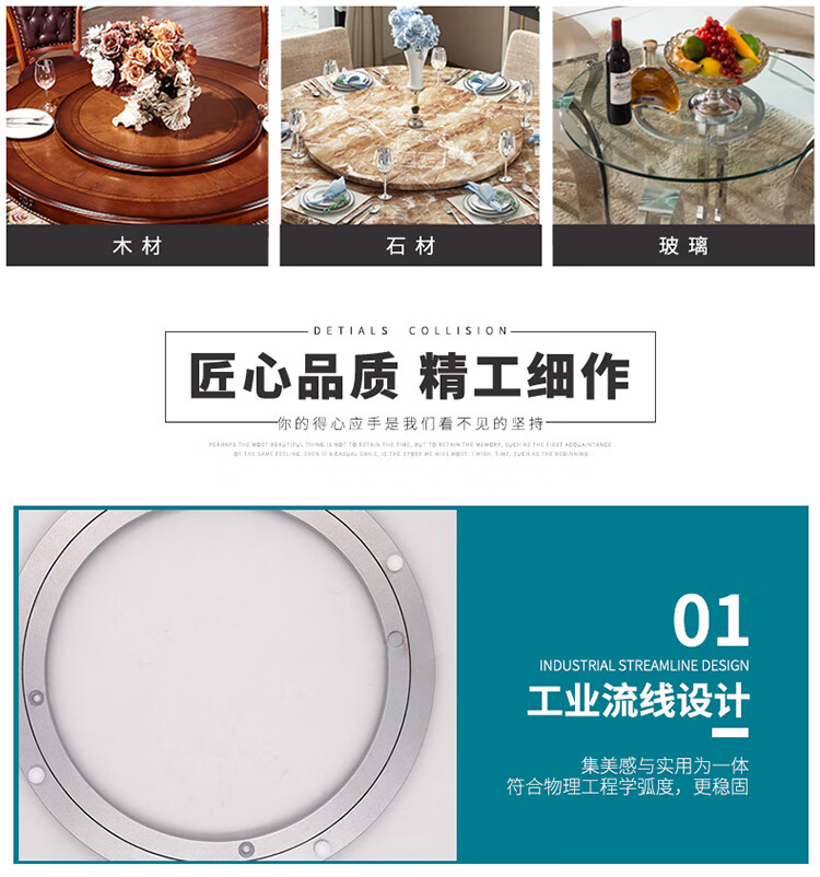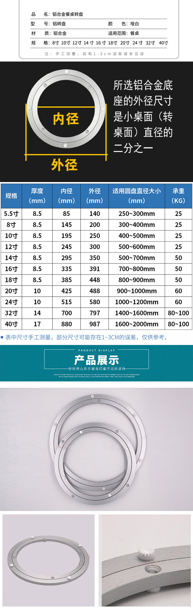 海斯迪克 gnjz-352 桌子转盘 高品质铝合金饭桌餐桌玻璃转盘 玻璃圆桌转盘底座 20寸(488*10mm)