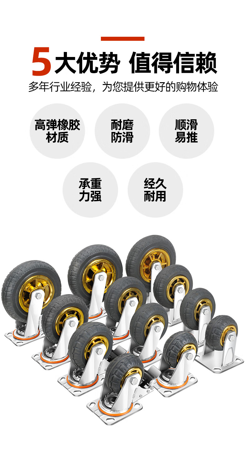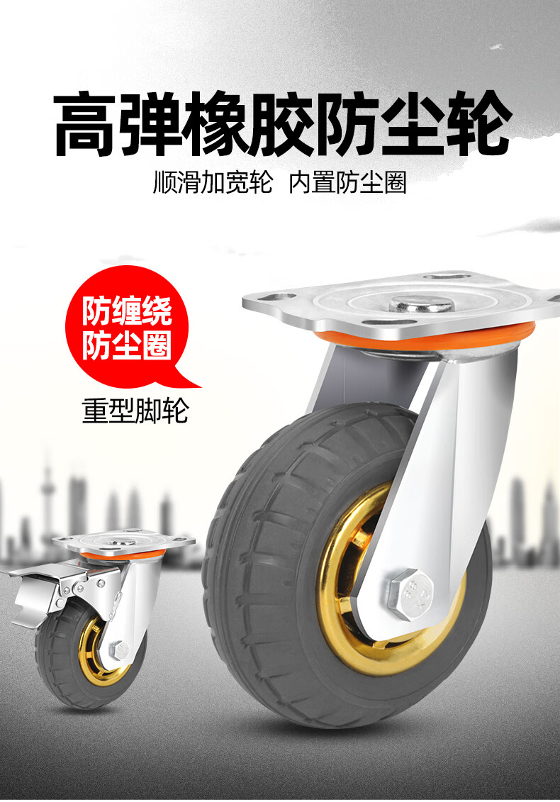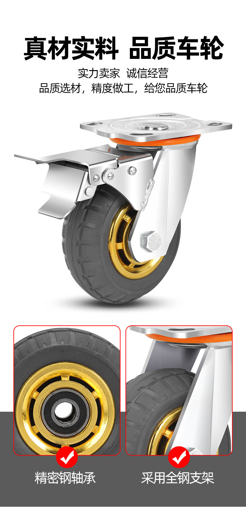 森桓脚轮尼龙重型万向轮带刹车4寸平板手推车轮滑轮轱辘 1只定向