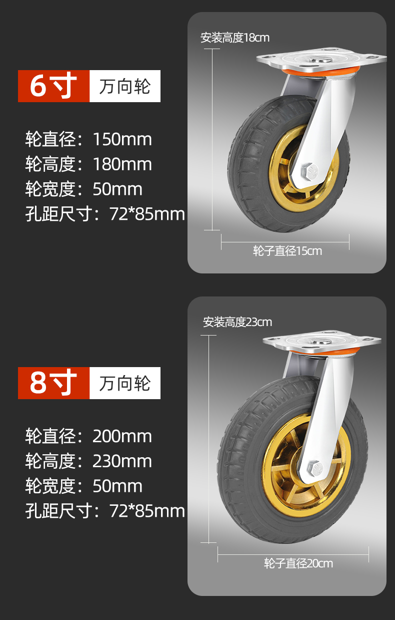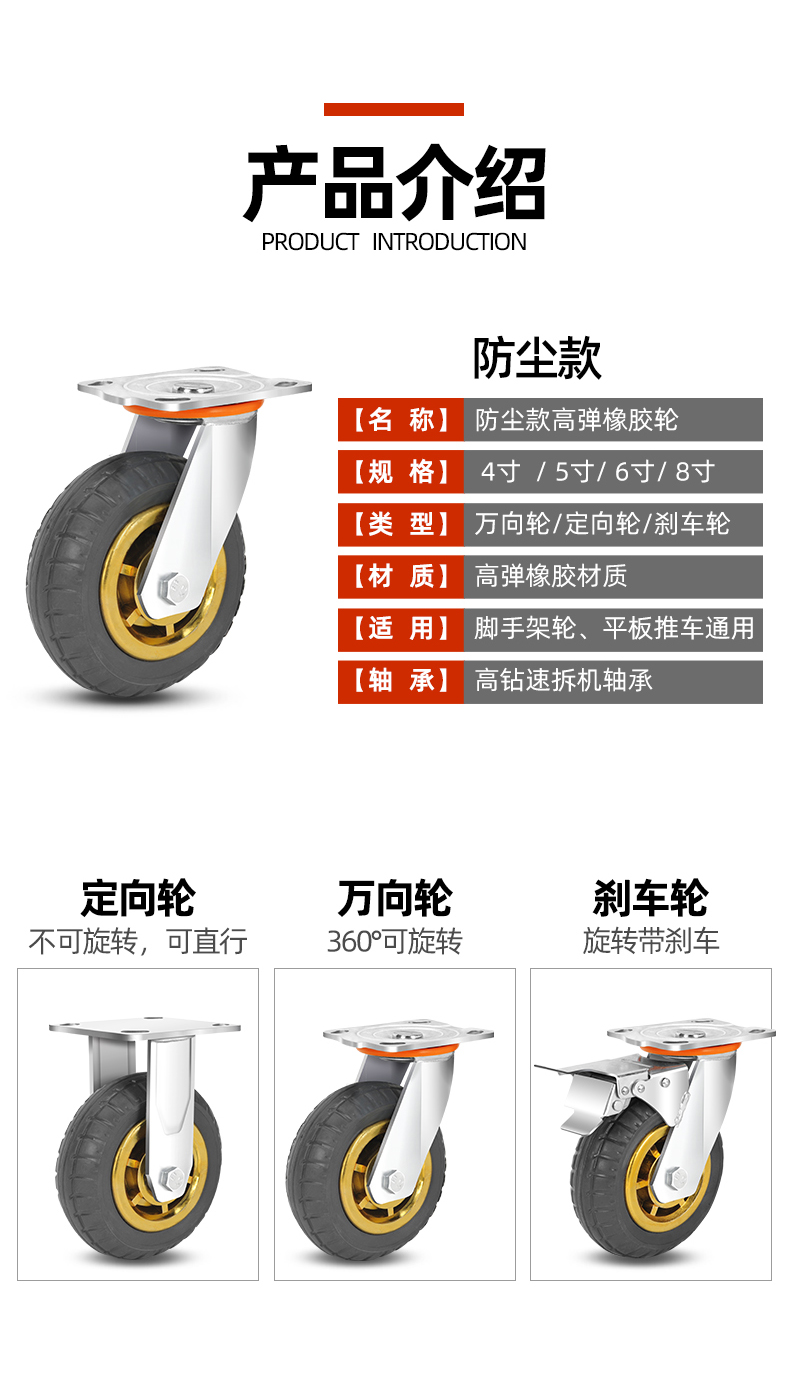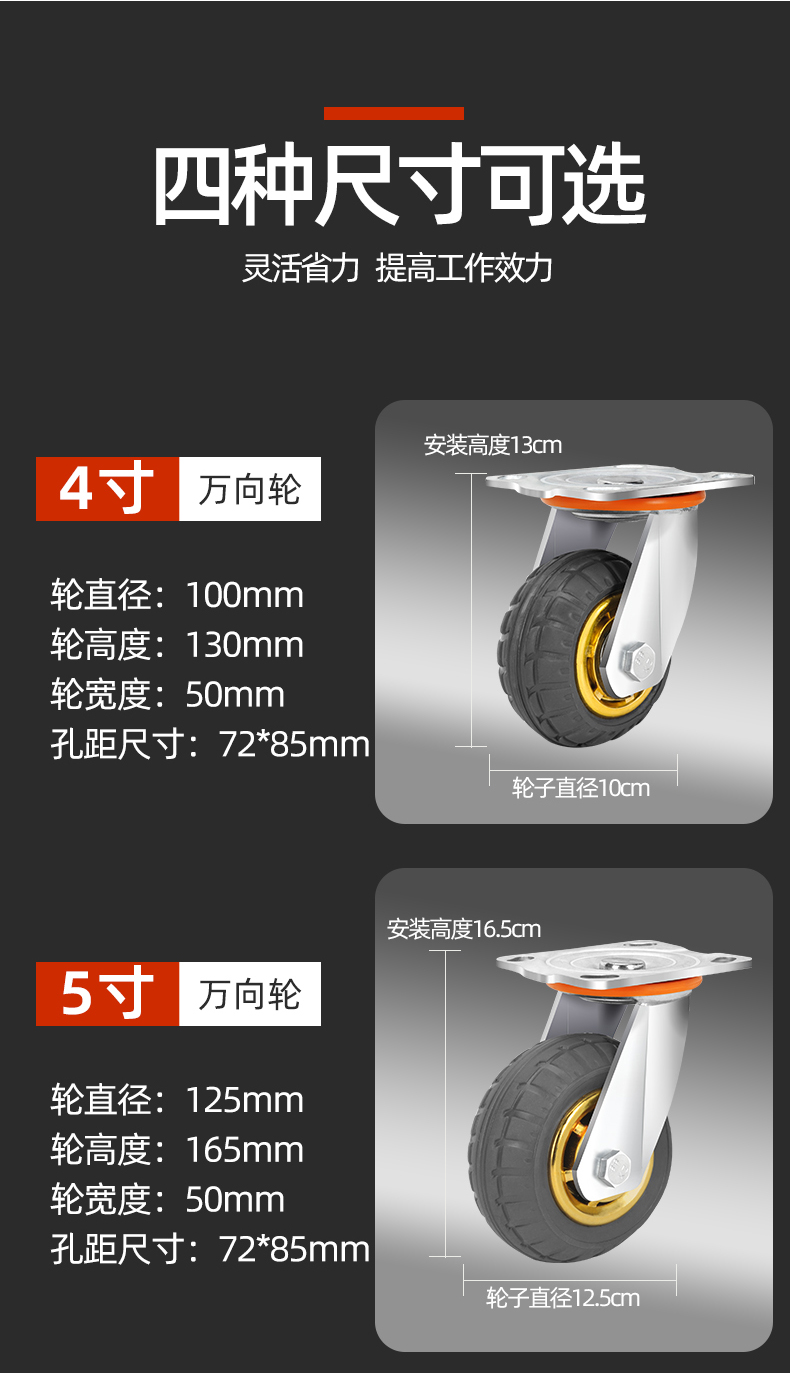 森桓脚轮尼龙重型万向轮带刹车4寸平板手推车轮滑轮轱辘 1只定向