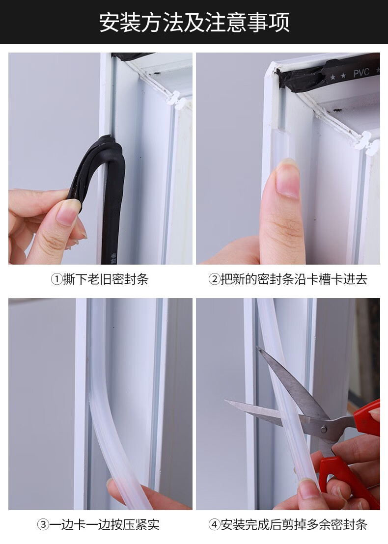 晴窗塑钢窗密封条卡槽式硅胶条防风保暖隔音O型条平开窗缝隙配件