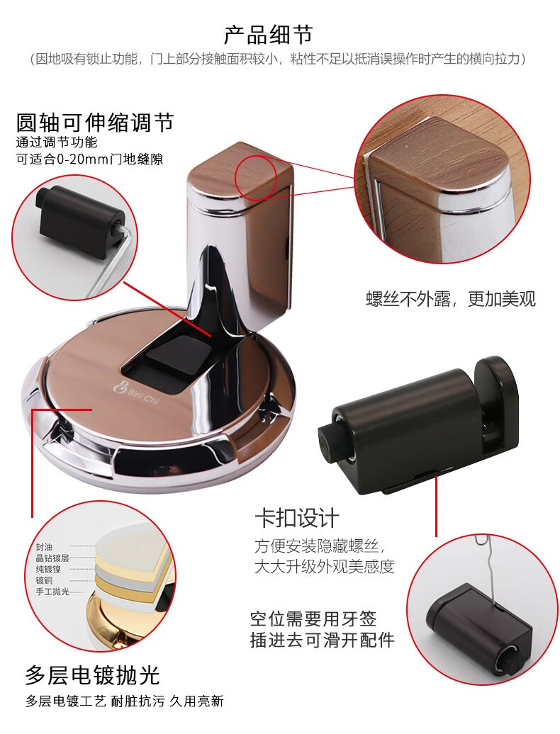 保尼卡(BiniChi)门吸免打孔地吸卫生间卧室门防撞防风门碰门挡门阻隐形墙吸门器