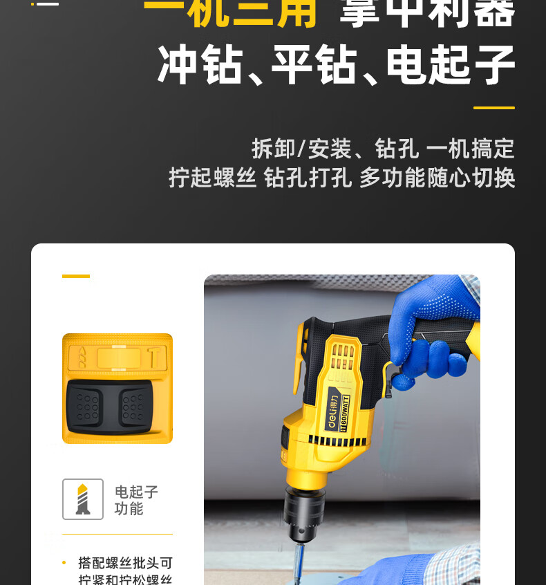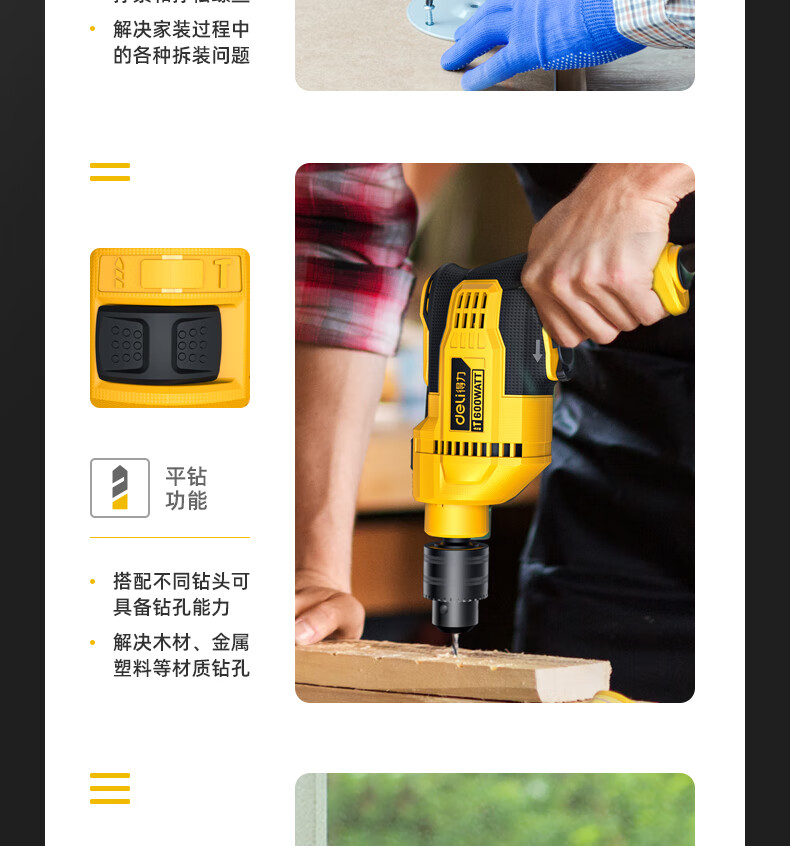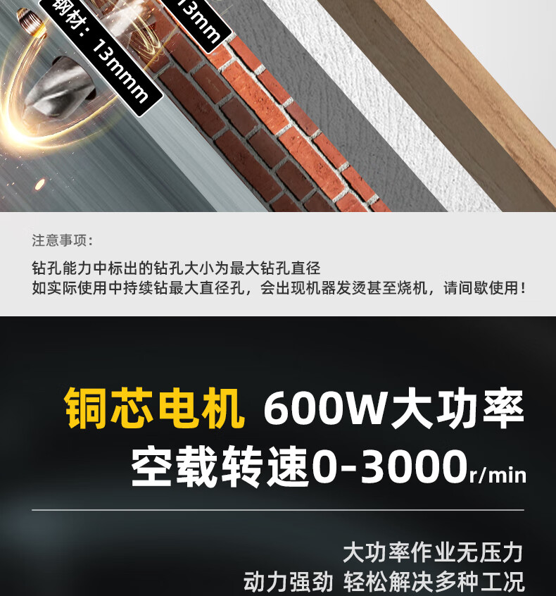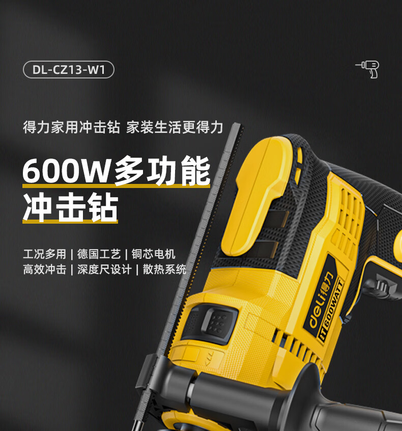 得力(deli)600W冲击电钻家用轻型手电钻电动螺丝刀交流电钻 DL-CZ13-W1