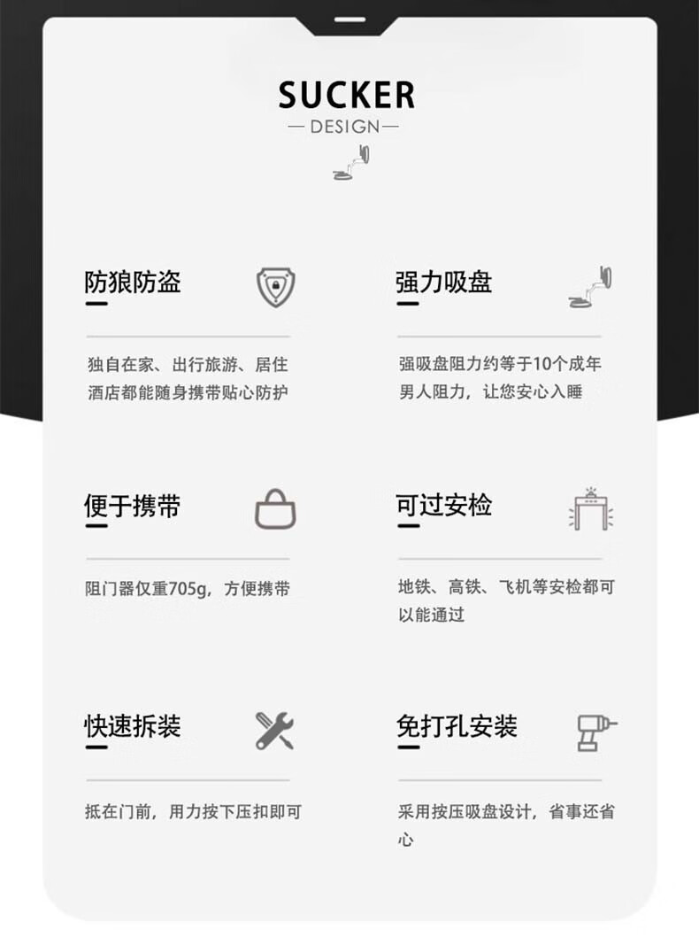乐卡利 阻门器门挡门阻酒店家用顶门器女生旅行安全防盗门阻器便携式 双吸盘 内外开门通用