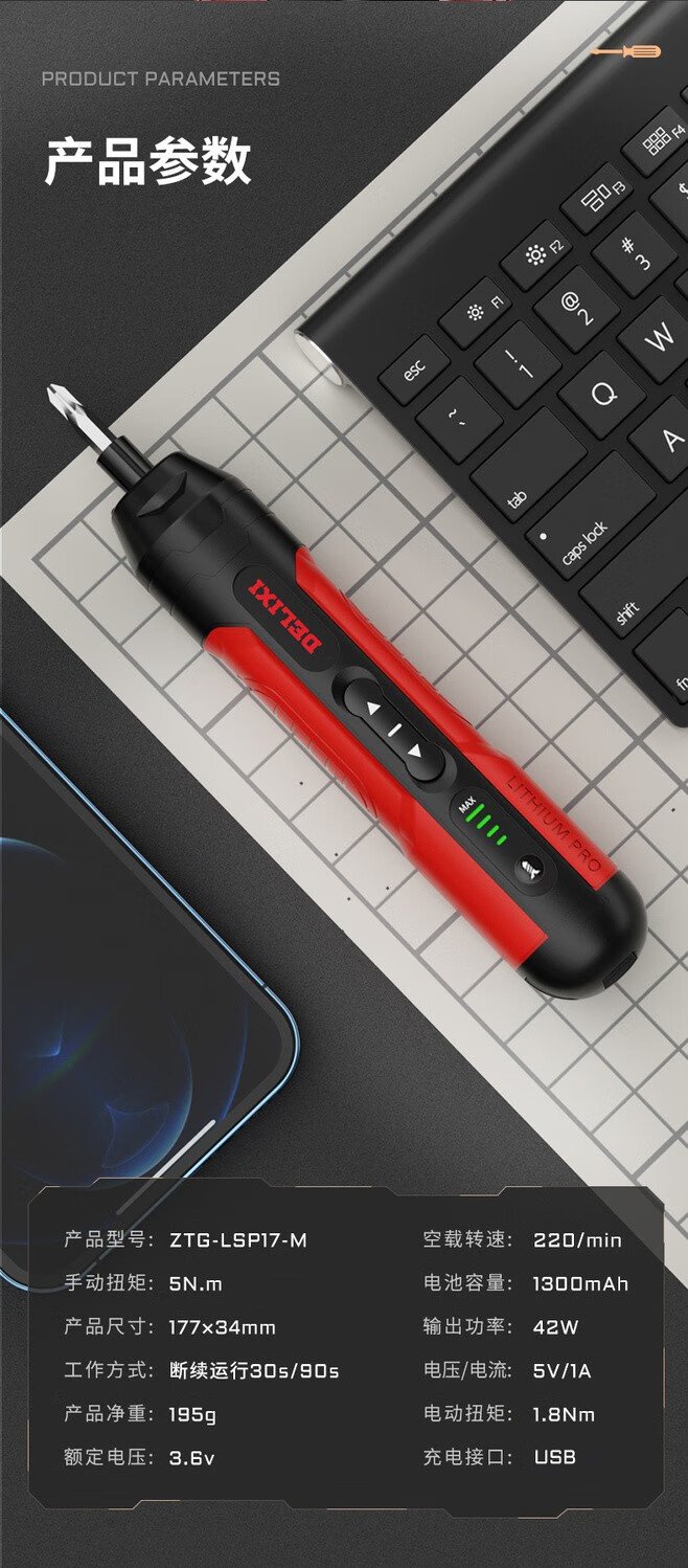 德力西电动螺丝刀套装多功能充电式螺丝批迷你小型家用电起子手自一体