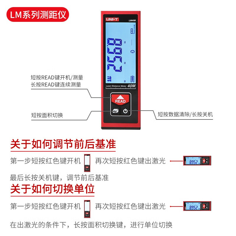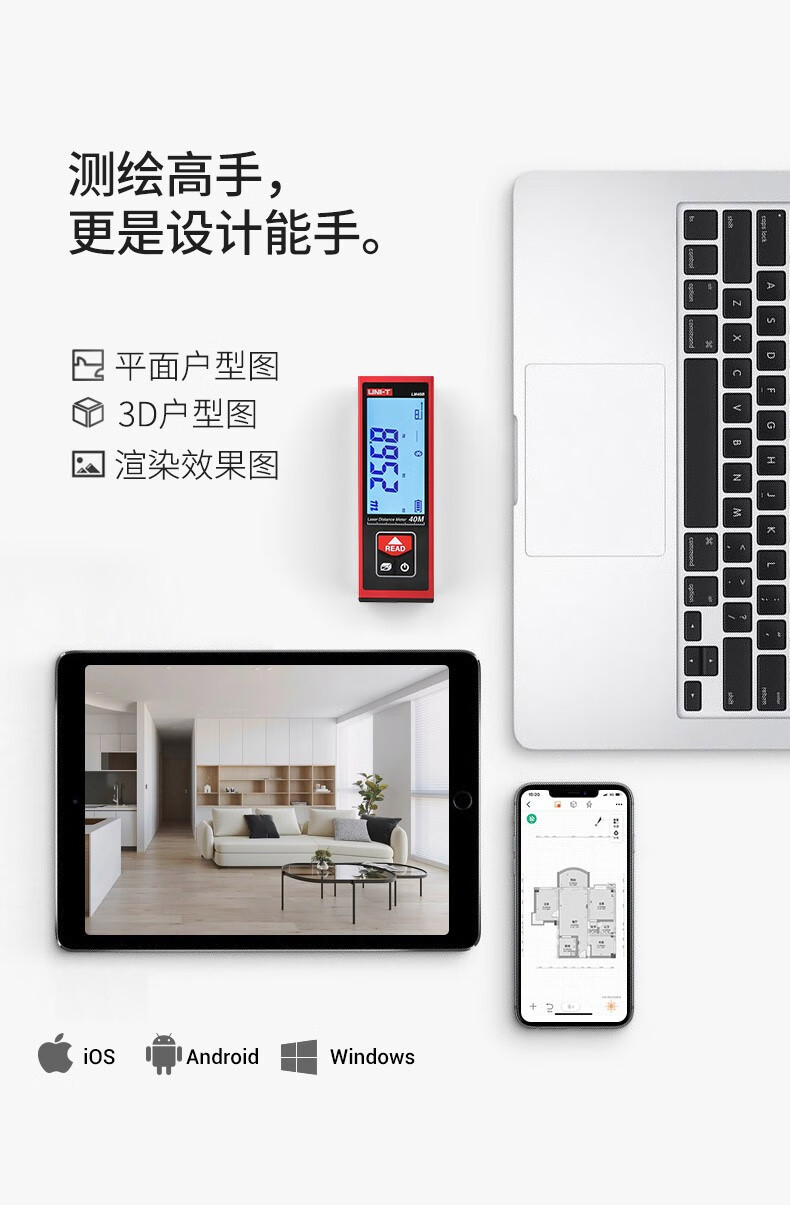 优利德(UNI-T)蓝牙激光测距仪 手持红外高精度量房仪 电子尺测量仪量房CAD出图 LM40B蓝牙绘图款40米