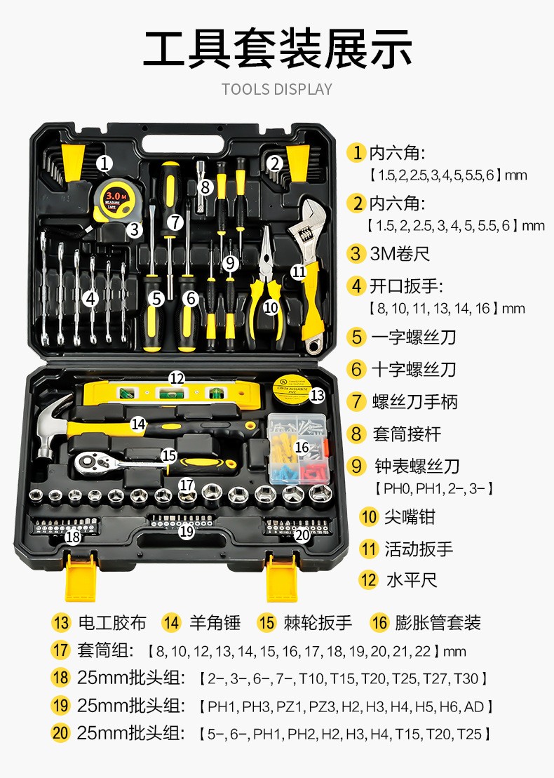 虎阁 工具箱套装 五金工具套装 家用手动工具组合汽车维修组套工具箱 工具套装 108件