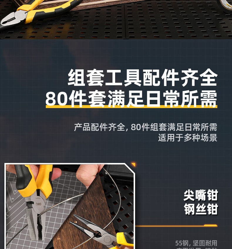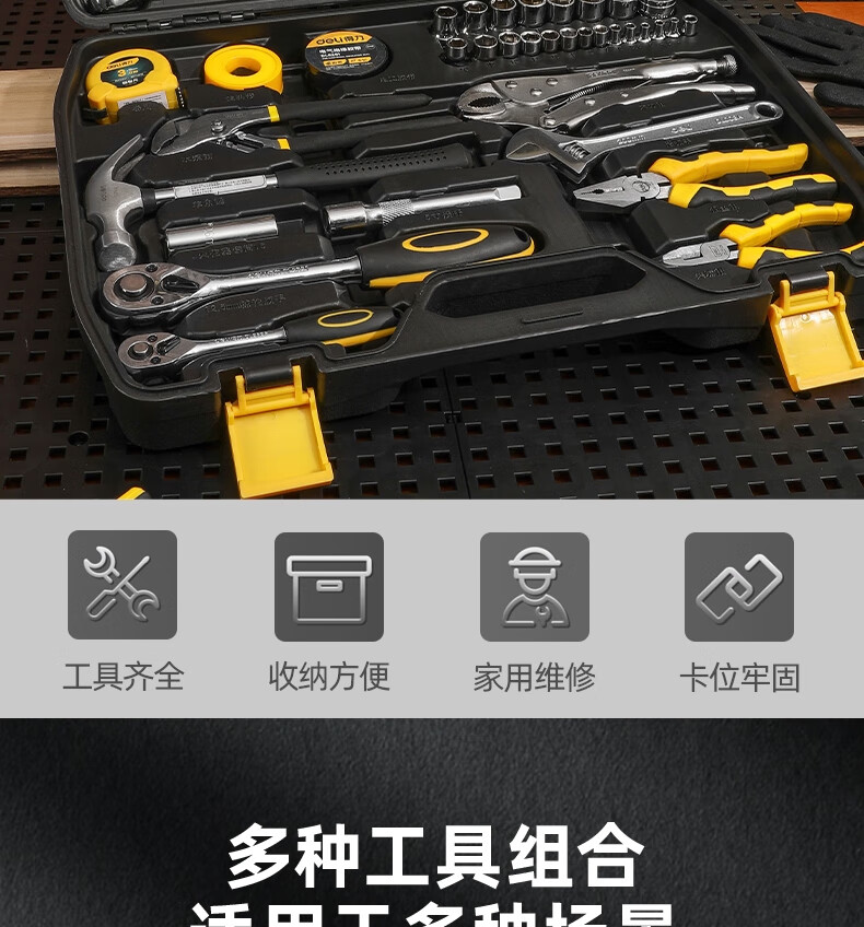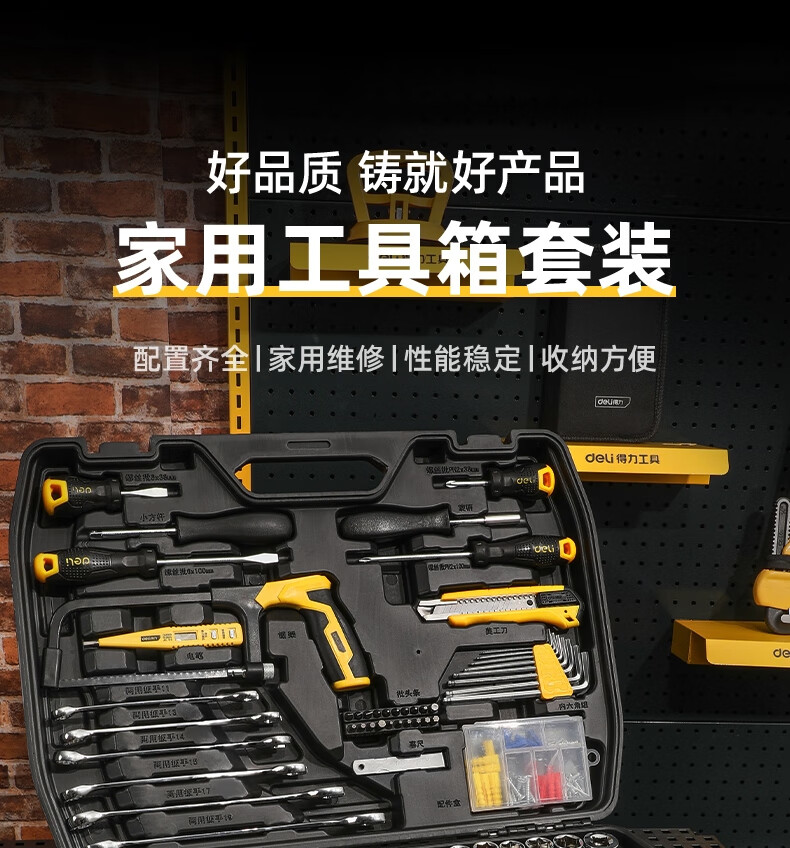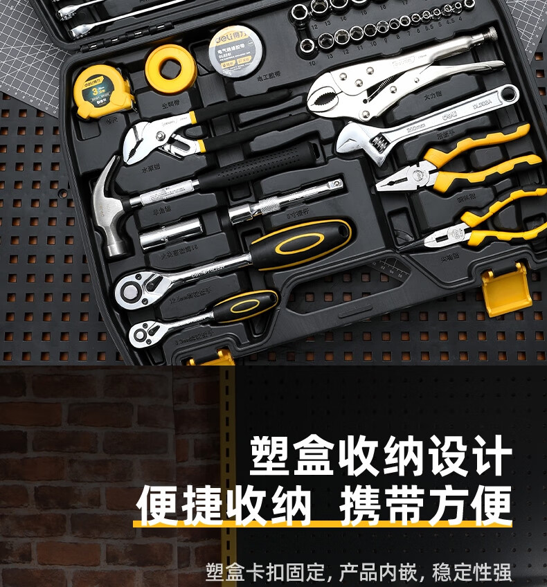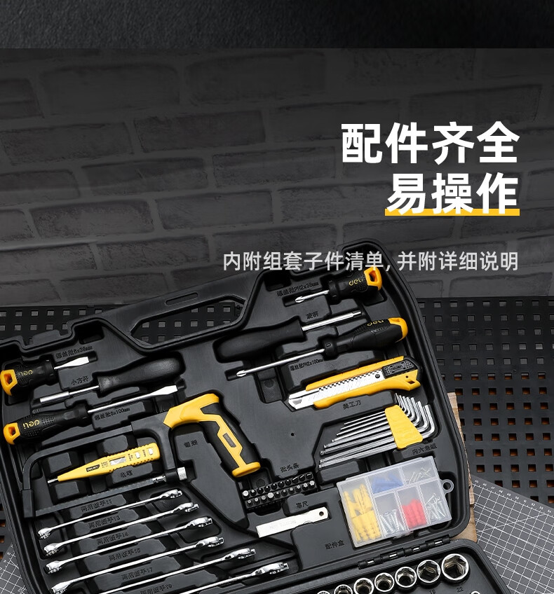 得力(deli)家用工具箱套装 电工木工维修五金手动工具组套羊角锤美工刀内六角扳手钳子 【家庭综合组套31件套】DL5972