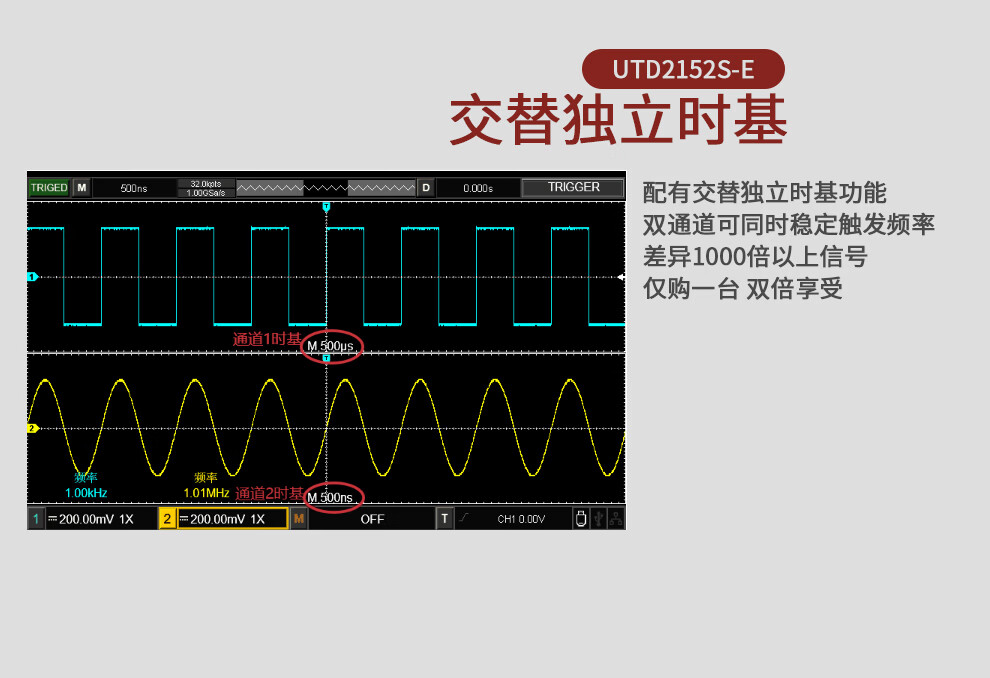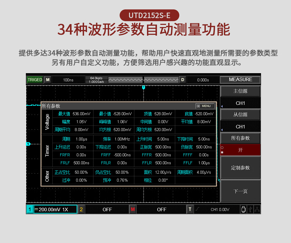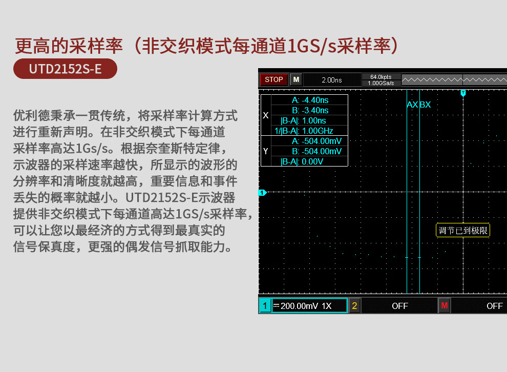 优利德UNI-T 工业品UPO1202S-E数字荧光示波器200M带宽快速波形捕获2通道