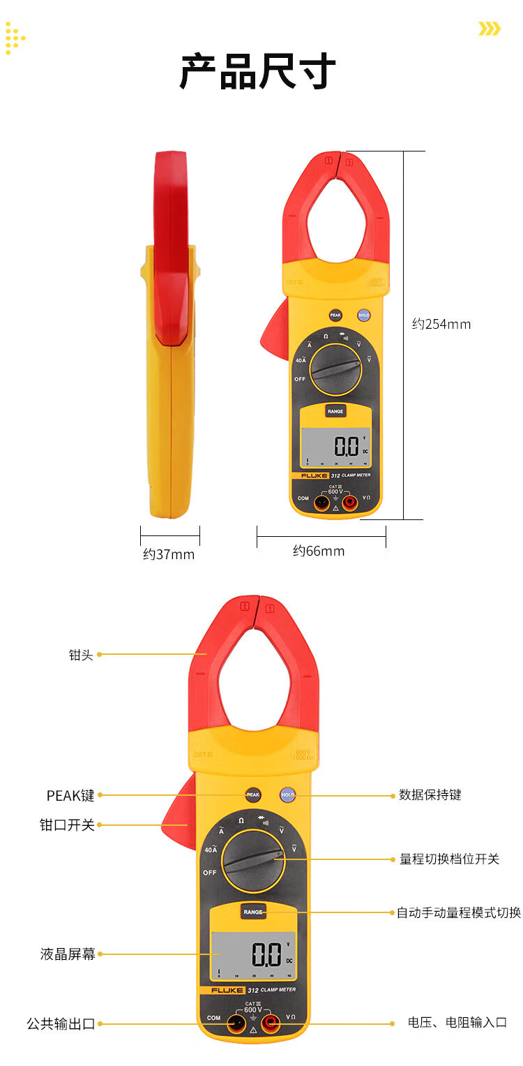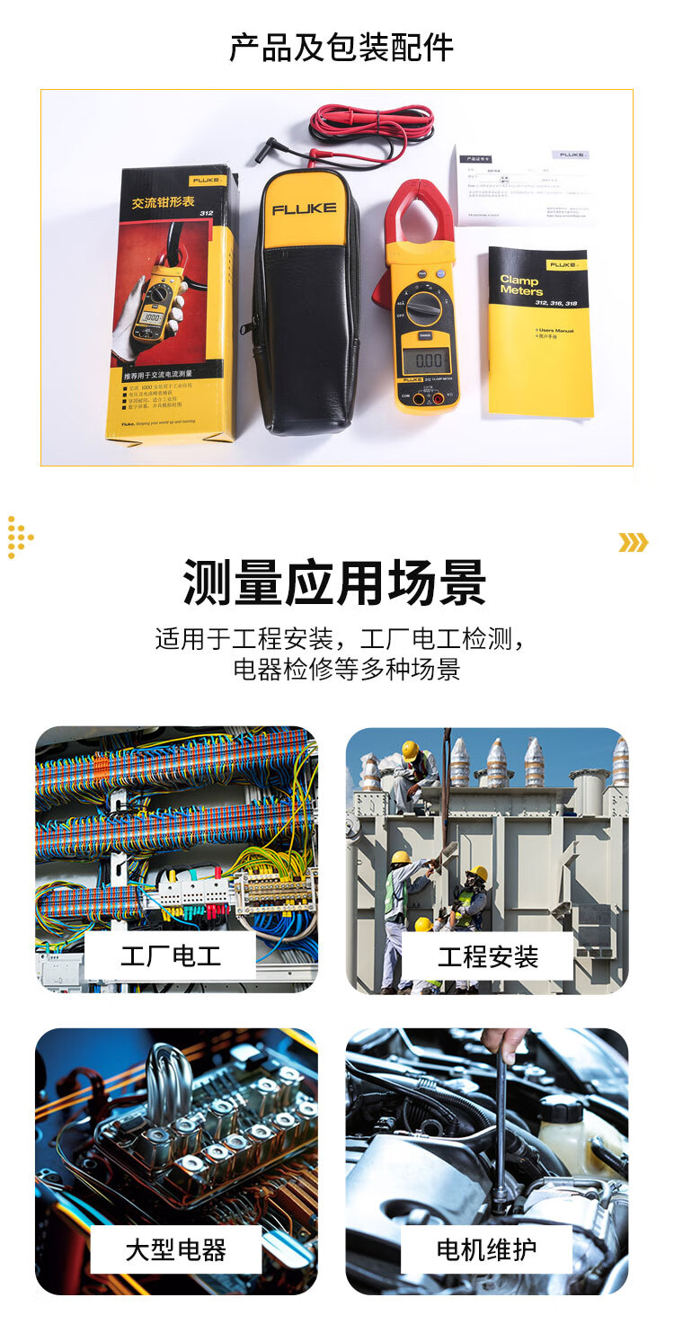 福禄克(FLUKE)F312 交流钳形电流表钳形万用表掌上型数字万用表多用表仪器仪表