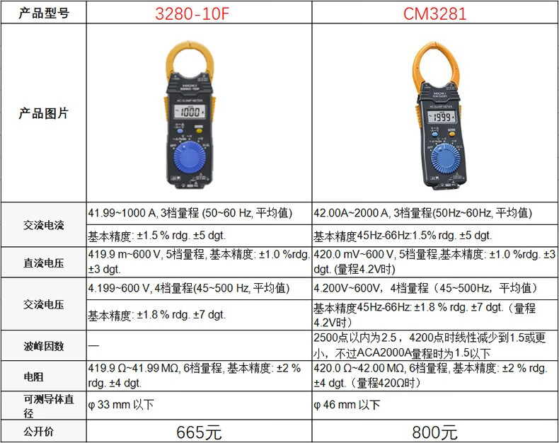 日置(HIOKI)日置3280-10F钳形万用表机身轻薄 高精度电流钳表 仪器仪表 CT6280