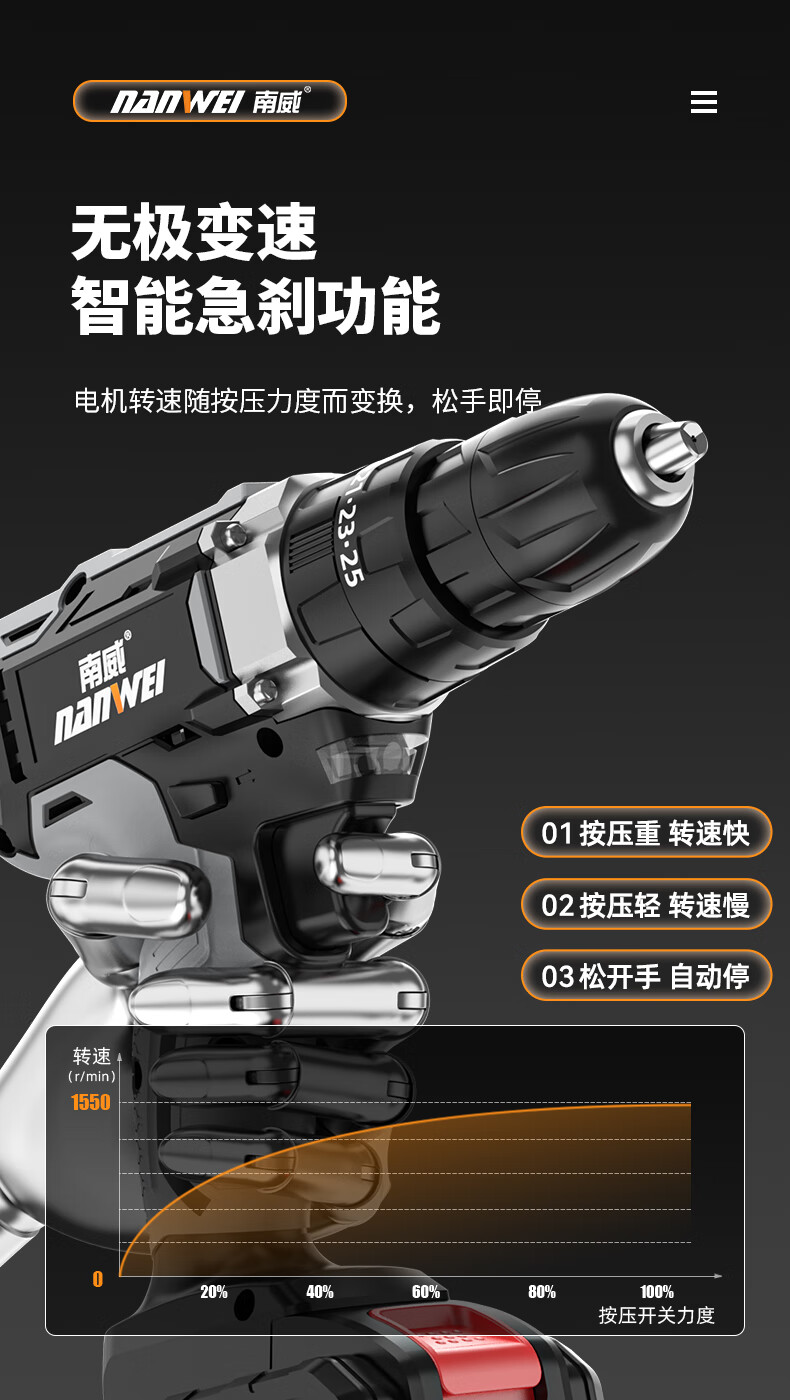 南威手电钻充电锂电钻家用电动螺丝刀多功能电起子木工用电动工具套装