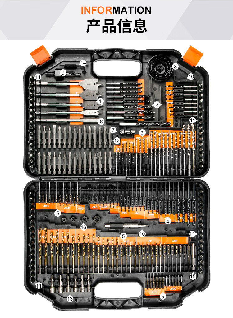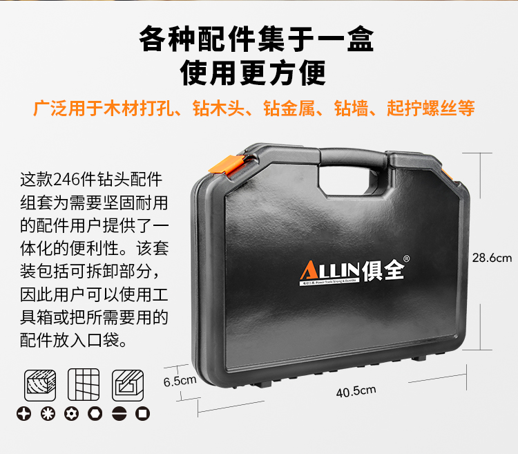 俱全(JUQUAN)246件套麻花钻头套装 木工扁钻 建工钻 水泥钻 开孔器螺丝批头