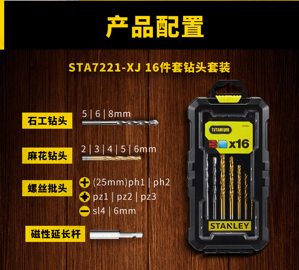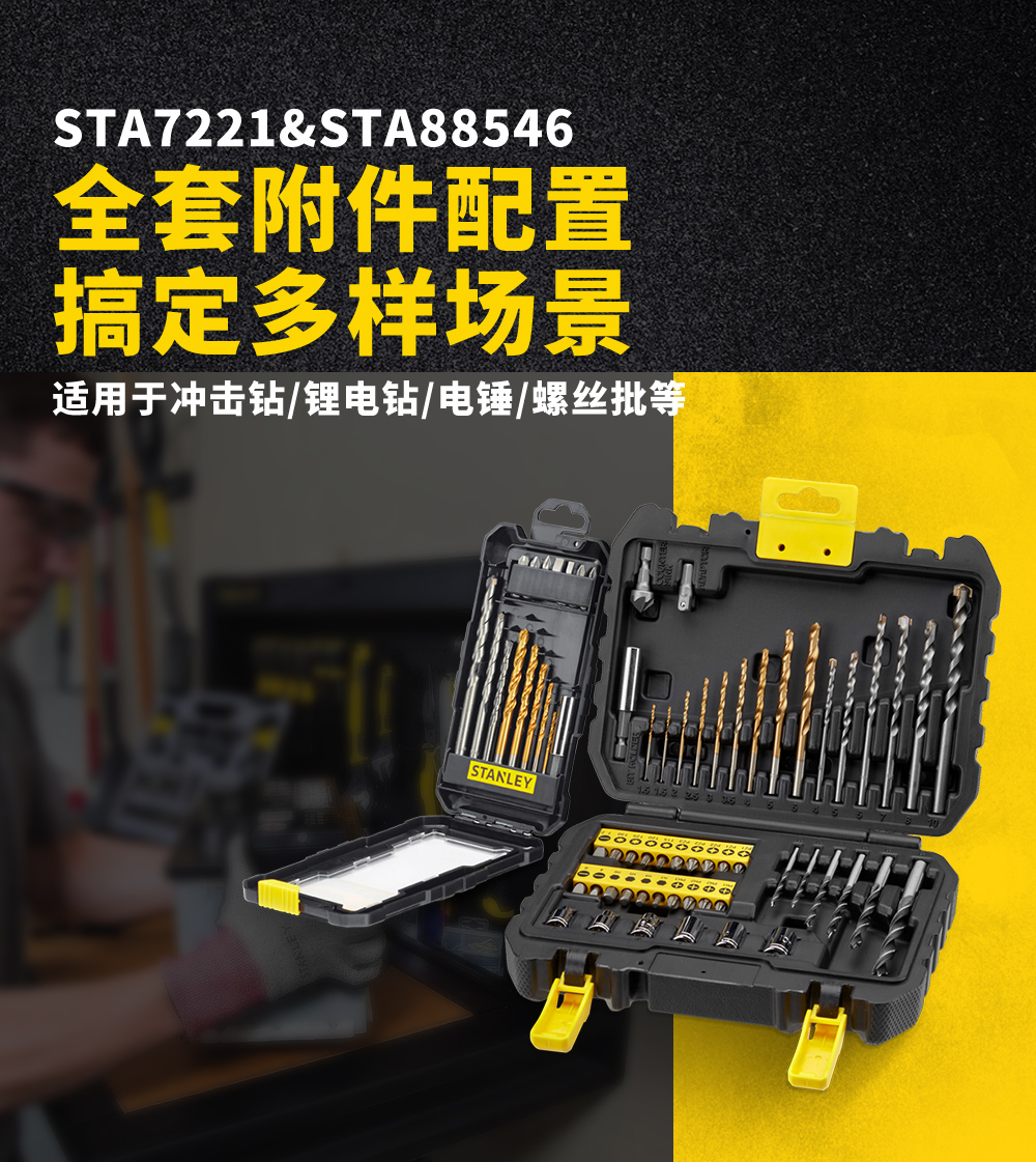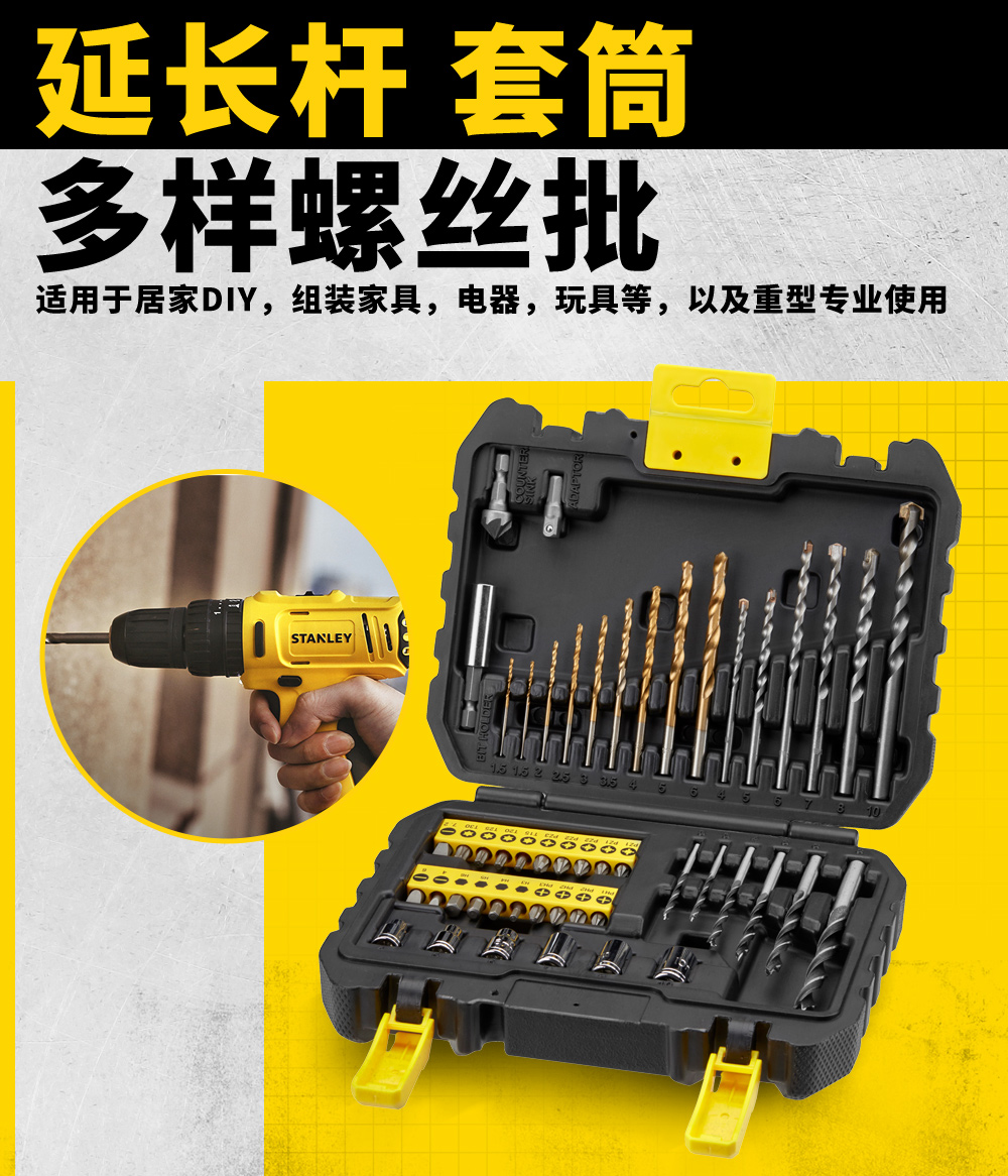 史丹利电动工具附件STA88546冲击钻电钻建工合金多功能钻头批头50件混合套装 STA88546