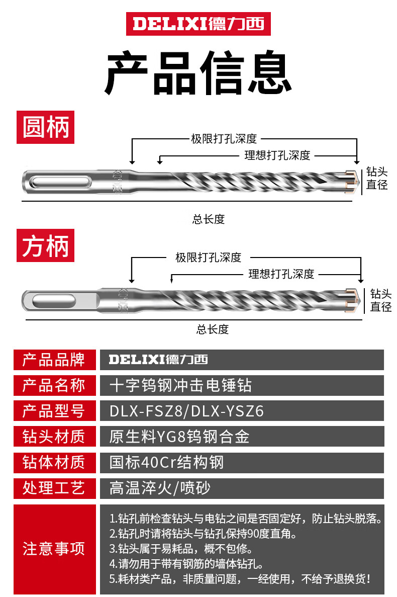 德力西(DELIXI)十字冲击电锤钻头混凝土穿墙钨钢合金打墙打孔DLX-FSZ8【32×350】