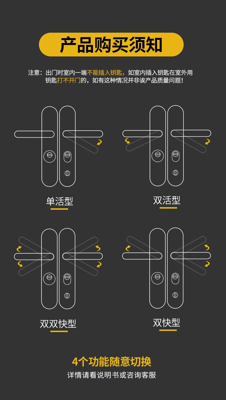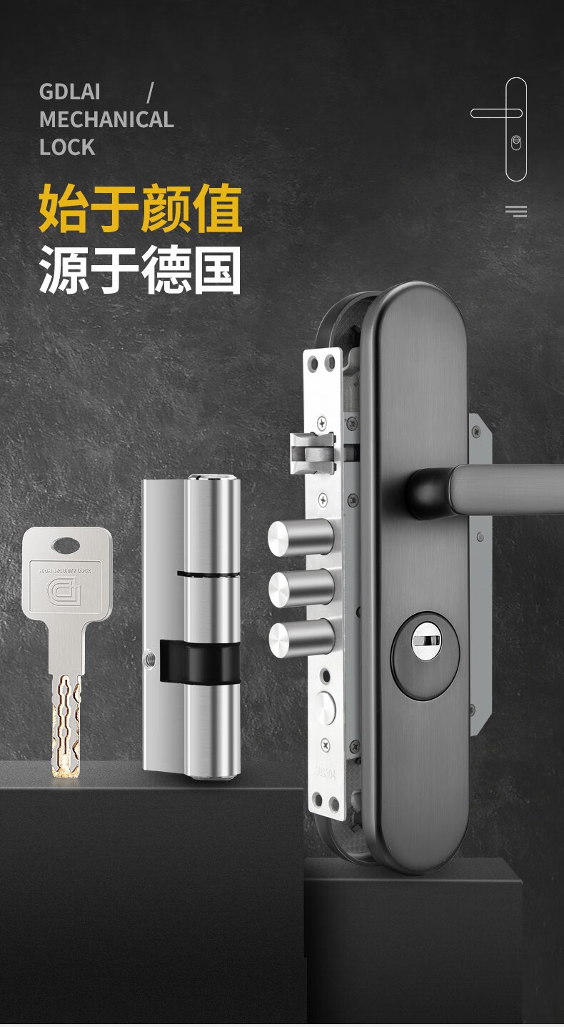 GDLAI德国GDLAI防盗门锁套装家用防盗门把手通用型锁具配件大门锁面板