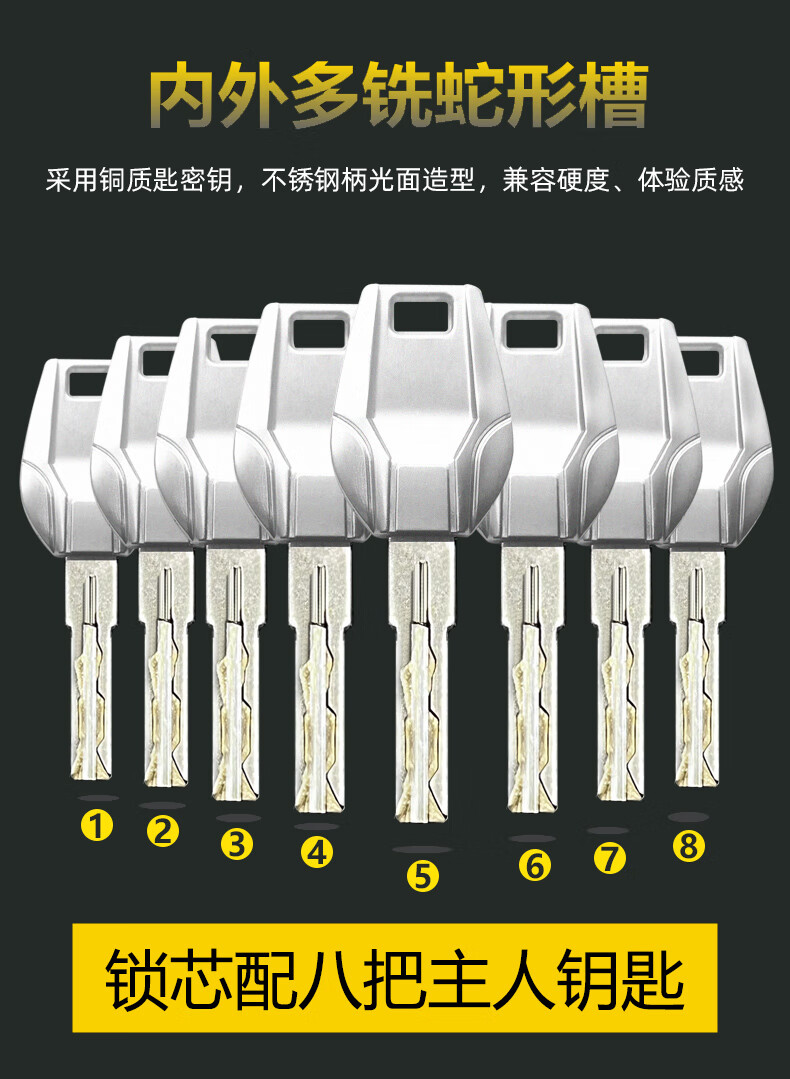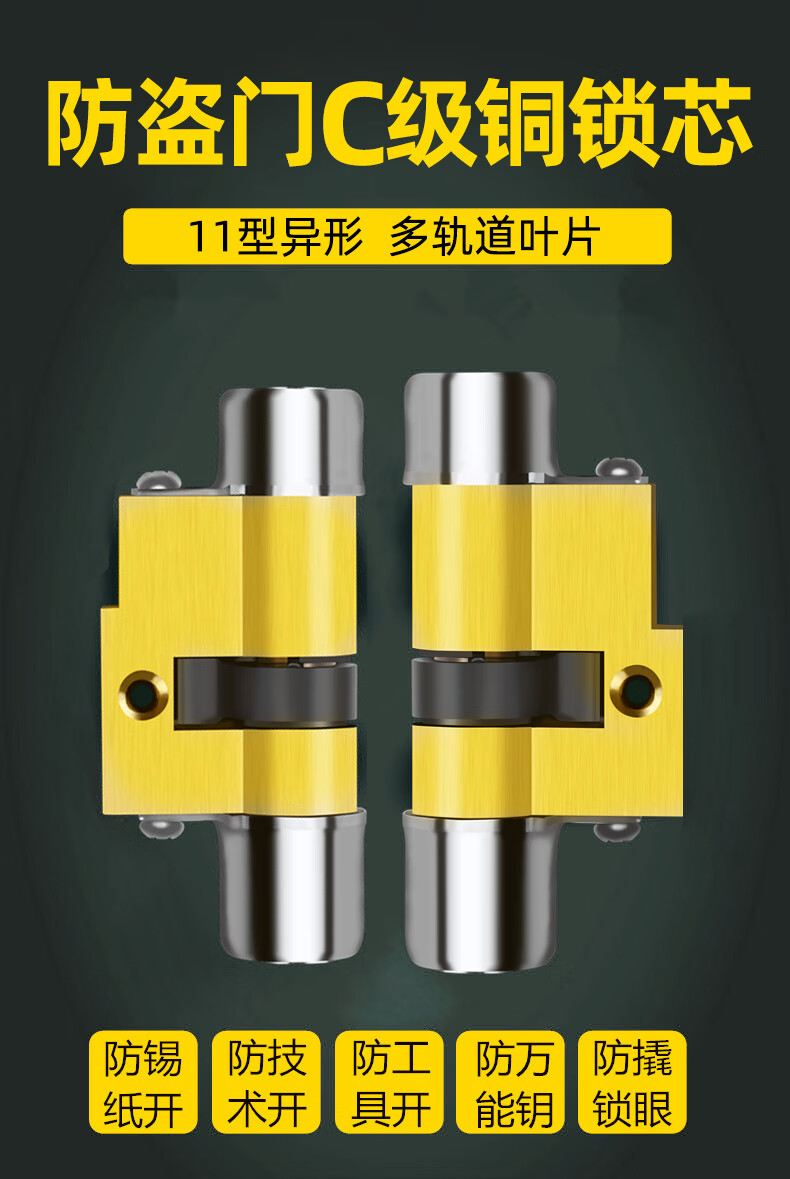 韦罗(VOOOLO) 11型防盗门C级异型锁芯铜壳钥匙叶片家用多轨道叶片偏心锁具配件