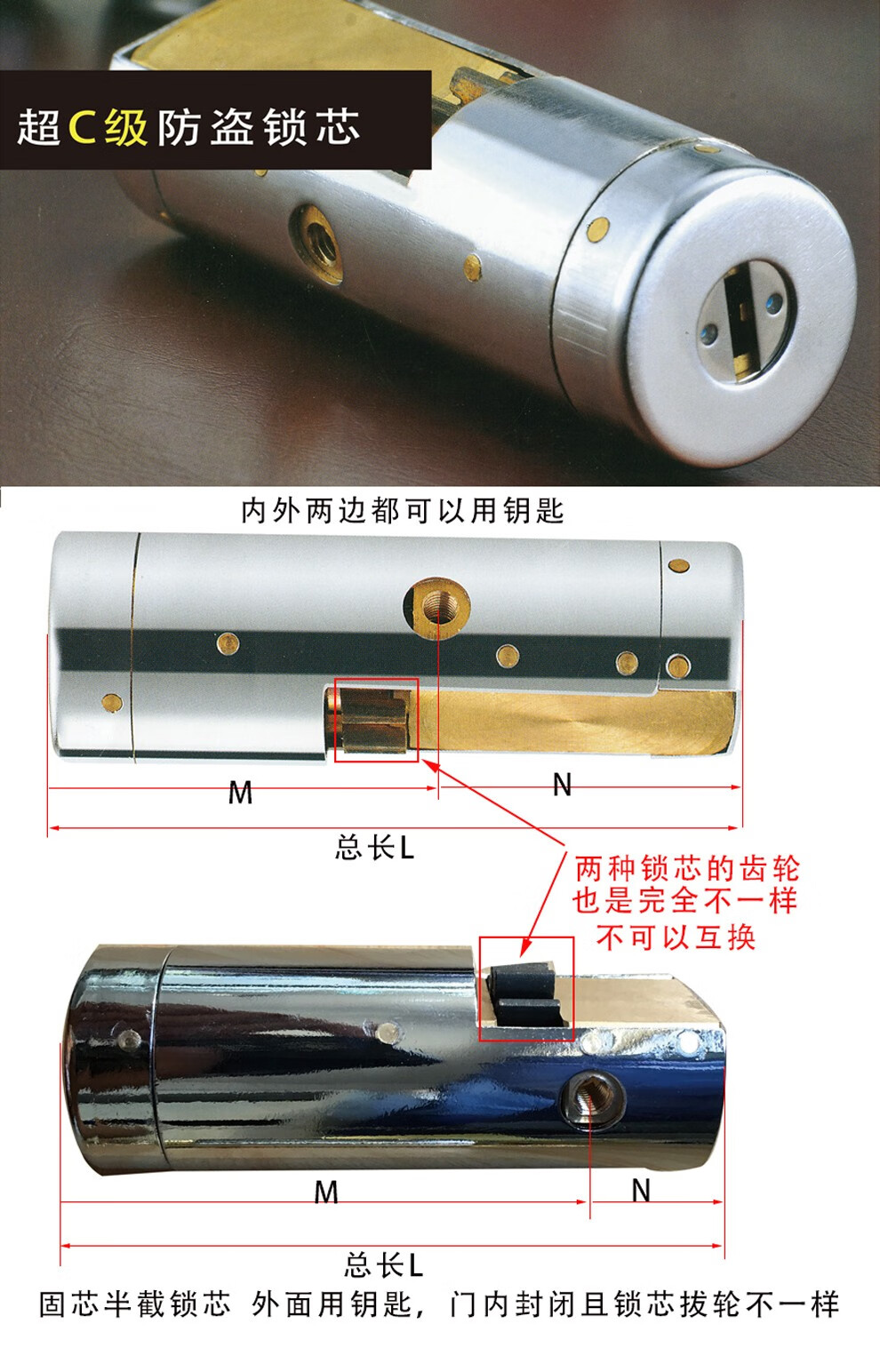 音拓超C级锁芯王利华爵防盗门配套锁芯特能自弹固心自动锁家用防盗锁