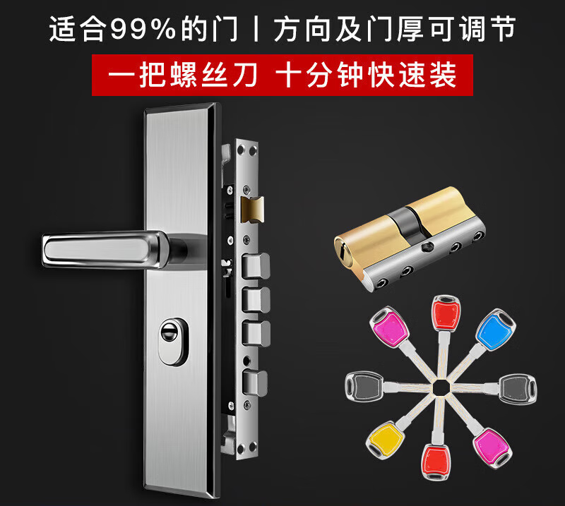 戎极防盗门锁套装不锈钢把手锁体通用型家用锁具木门锁大门锁机械门锁