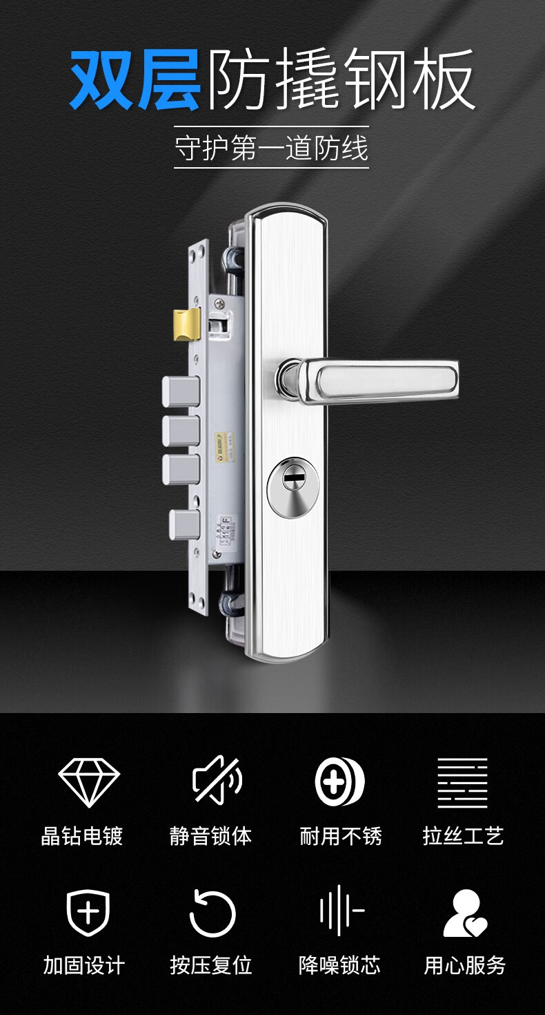 戎极防盗门锁套装不锈钢把手锁体通用型家用锁具木门锁大门锁机械门锁
