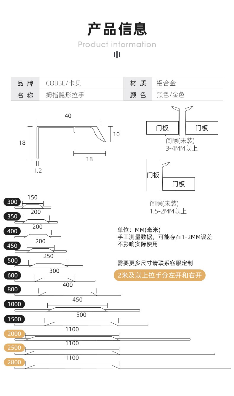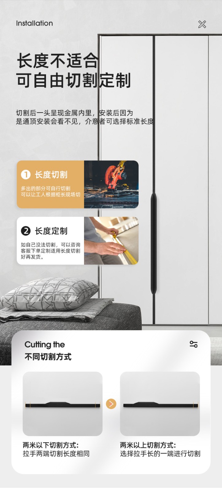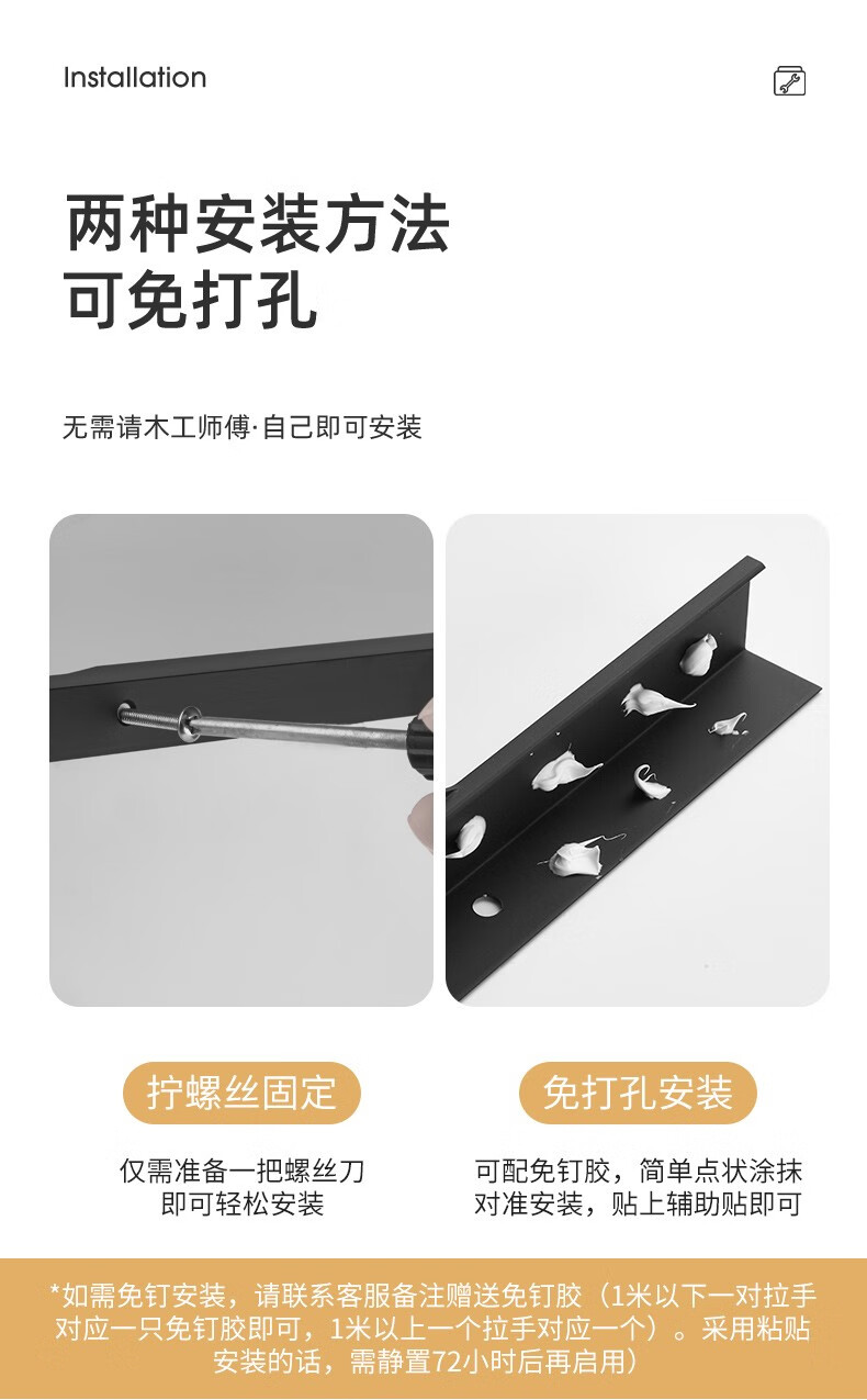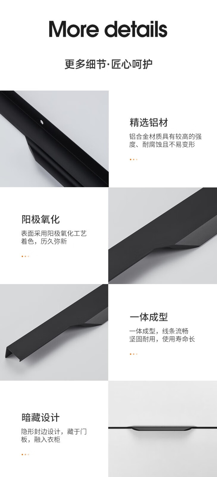 卡贝(cobbe)柜门长拉手黑色现代简约柜衣柜抽屉橱柜柜子门把橱衣门把手隐形