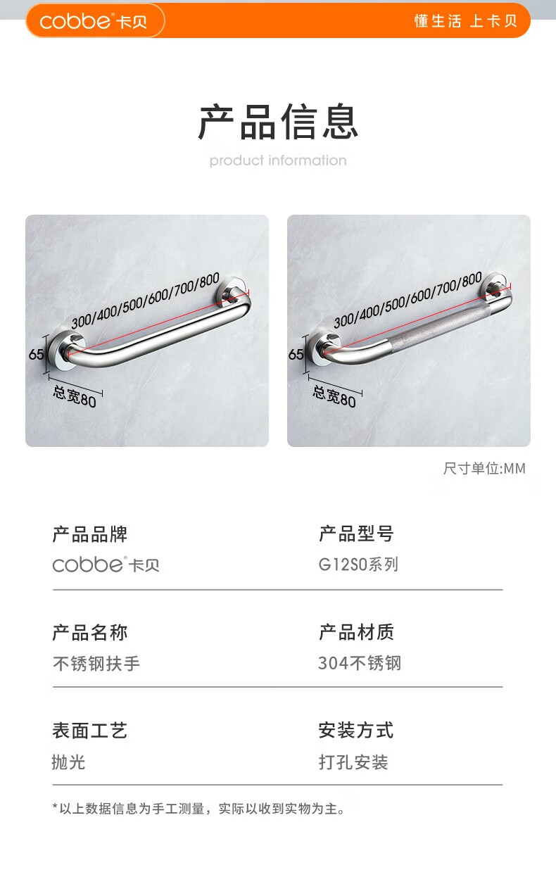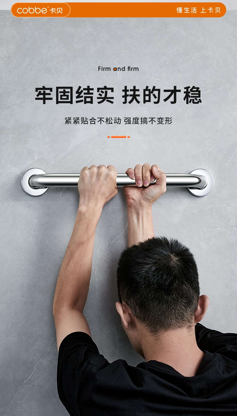 卡贝(cobbe) 浴室304不锈钢不锈钢安全扶手卫生间马桶栏杆人老人厕所条纹拉手